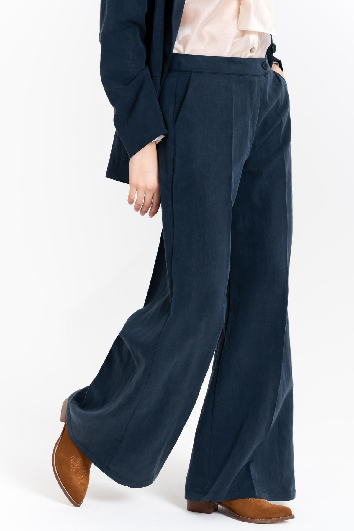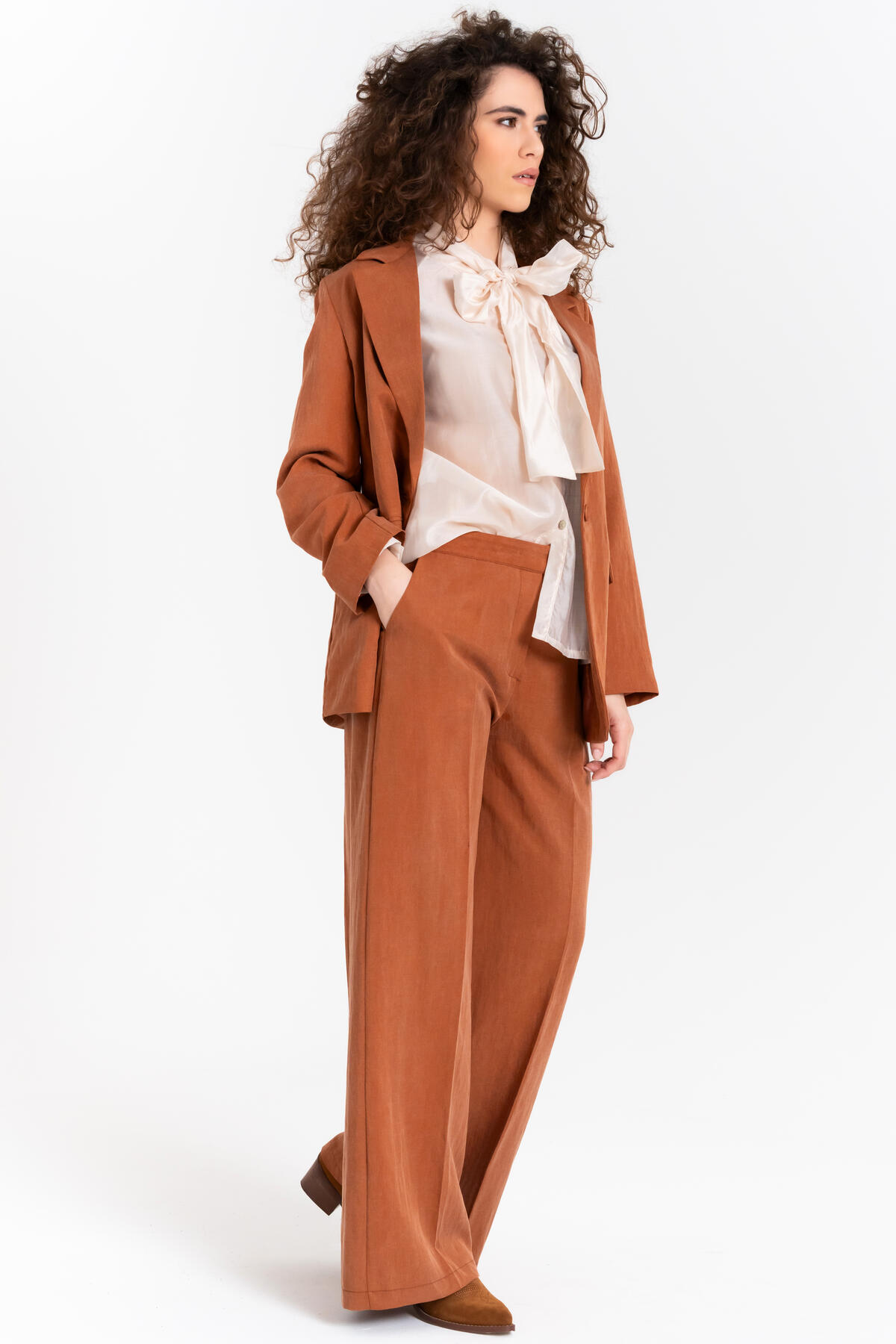 Pantalon ample et fluide en tissu léger effet peau de pêche.