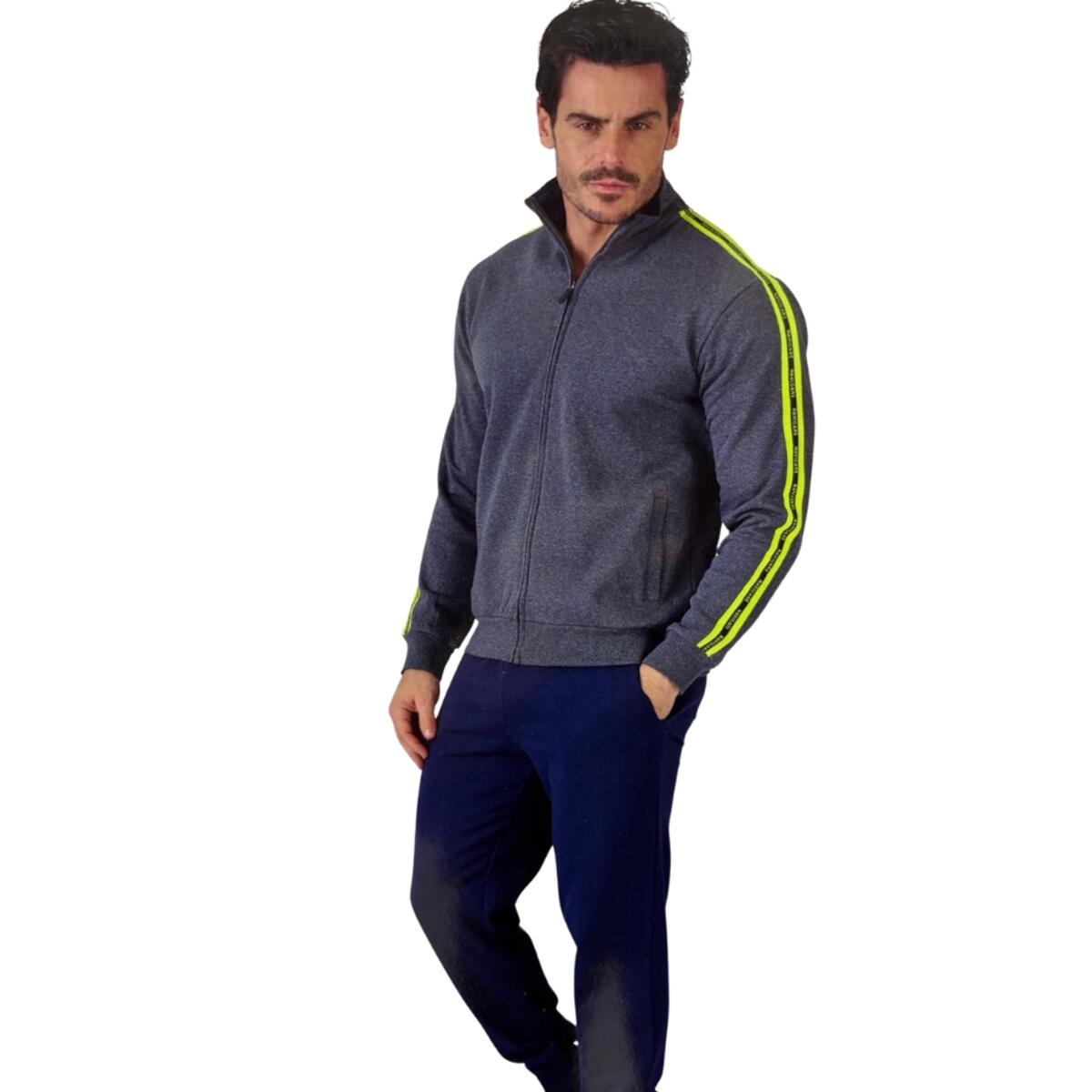 Completo in felpa invernale da uomo composto da maglia fullzip e pantalone con polsino.