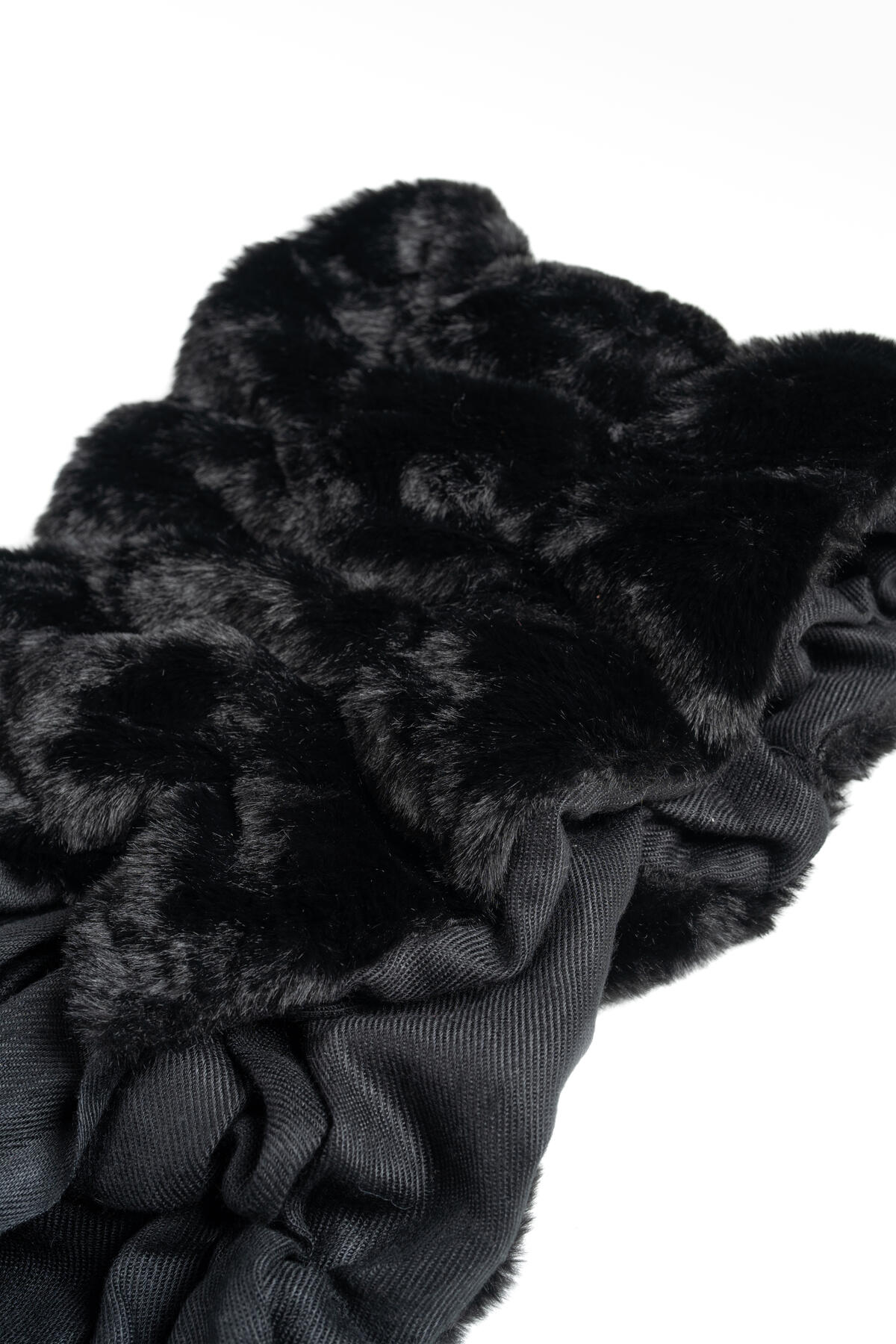 Sciarpa da donna con collo in pelliccia e parte inferiore liscia, rifinita con frange alle estremità.