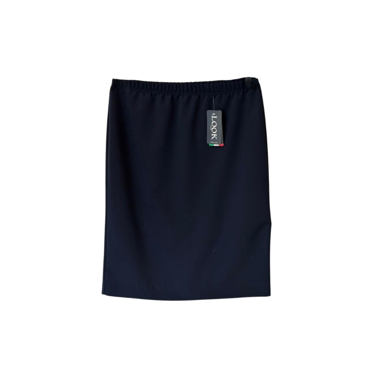 Gonna classica in acrilico elasticizzato foderata con sottogonna, con elastico in vita e spacco sul retro.