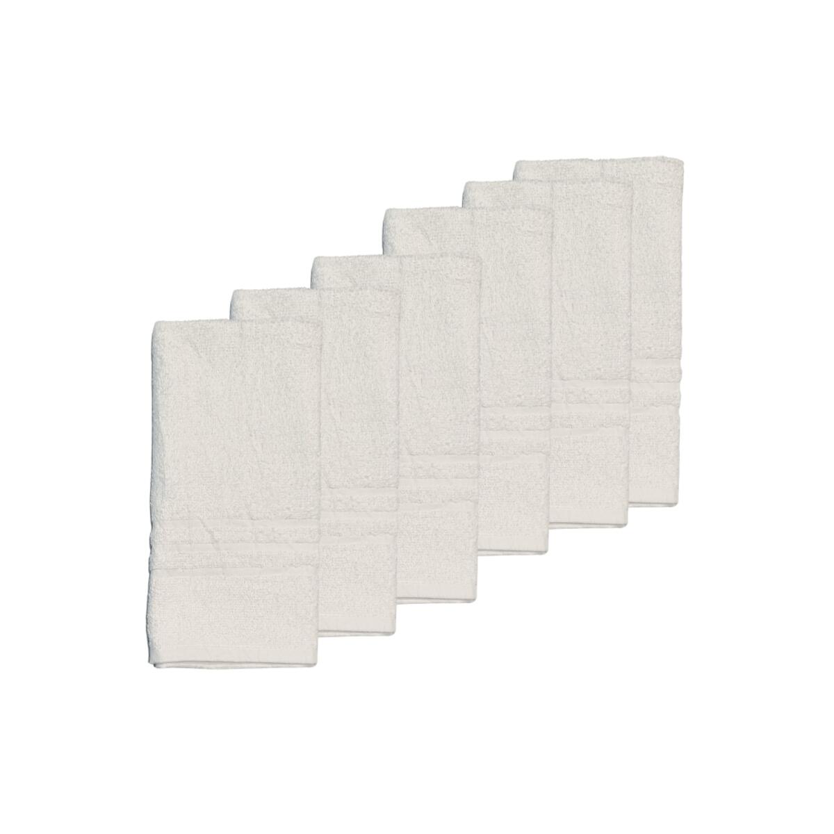 Il set da 6 pezzi è composto da 6 asciugamani tinta unita bianchi.