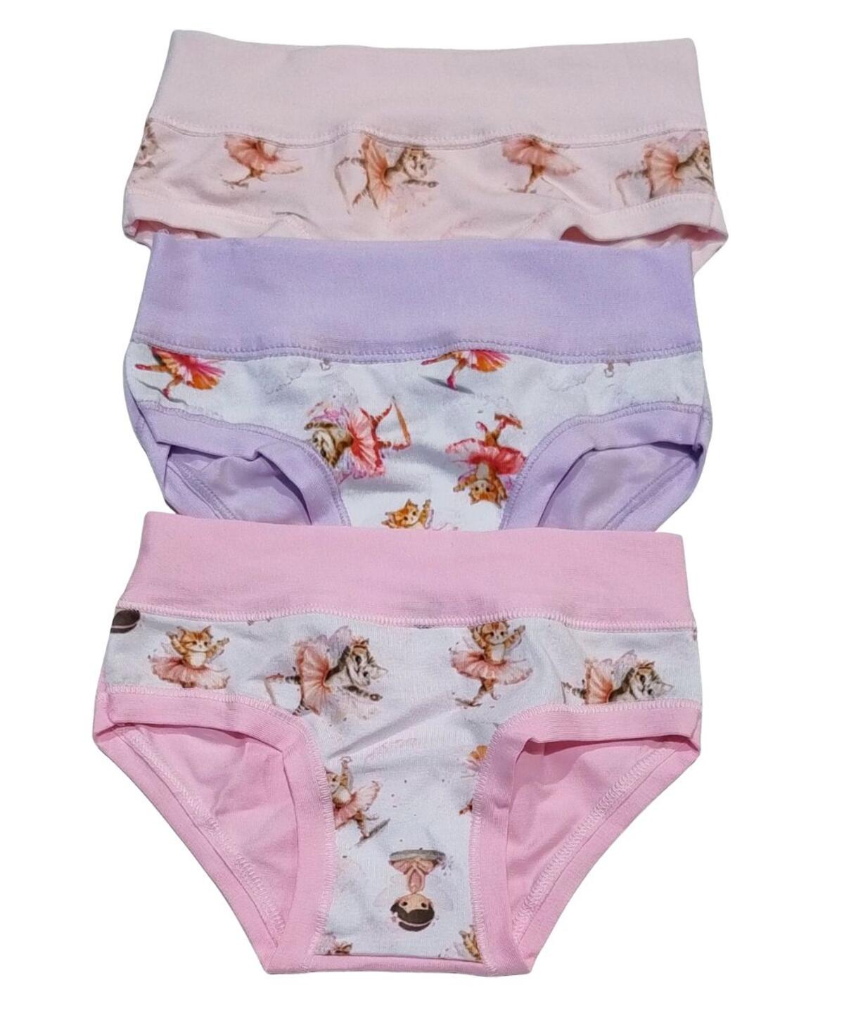Slip boxerini da bambina in morbido cotone elasticizzato fantasia con elastici tubolari.