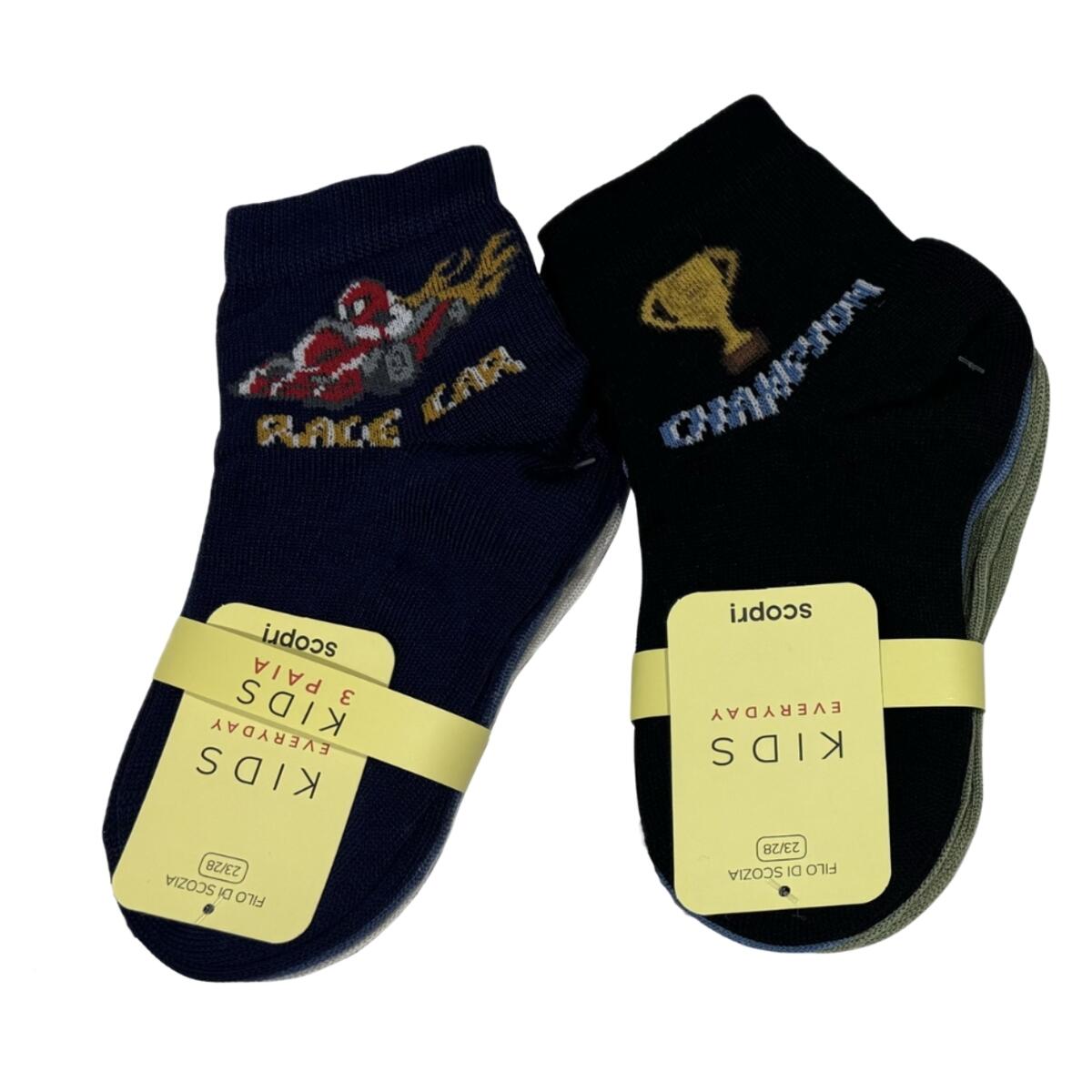 Venduto in confezione da 3 paia con colori e fantasie assortite.