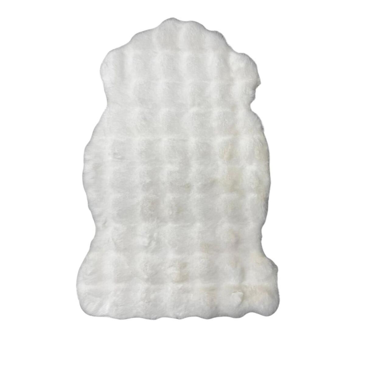 Morbido tappeto in eco pelliccia con effetto trapuntato e forma irregolare. Elegante e accogliente, ideale per camere da letto, salotti o angoli relax.