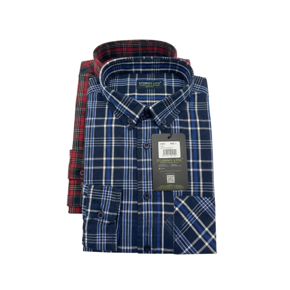 Camicia da uomo a maniche lunghe, in cotone in fantasie a quadri assortite.