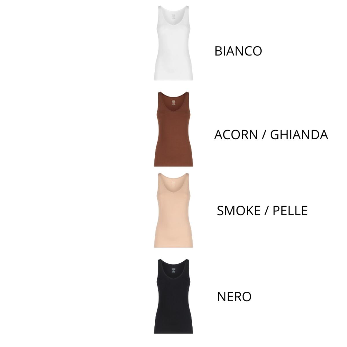 Canottiera da donna realizzata in cotone elasticizzato extra fine, con spalla larga e scollo a V.
