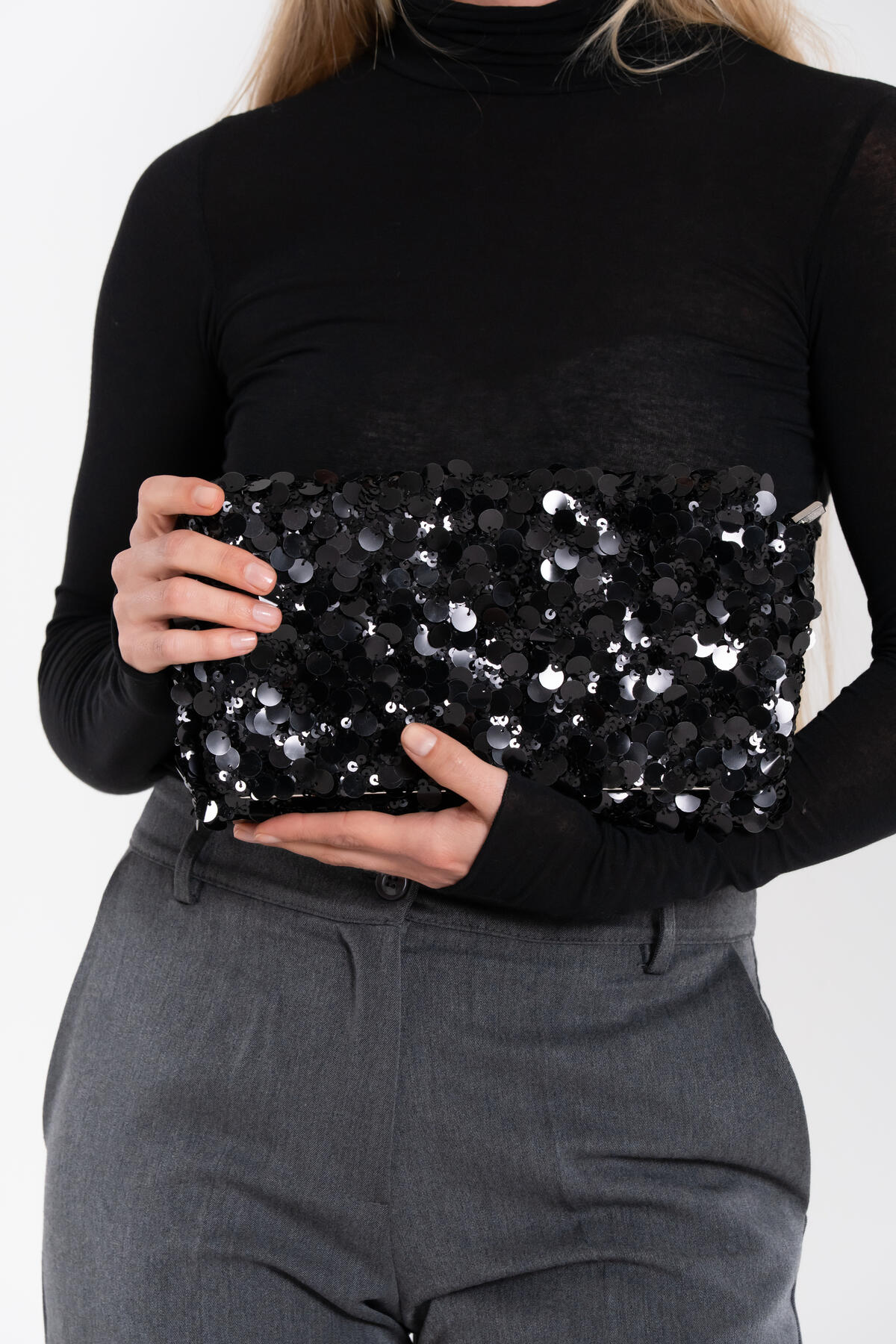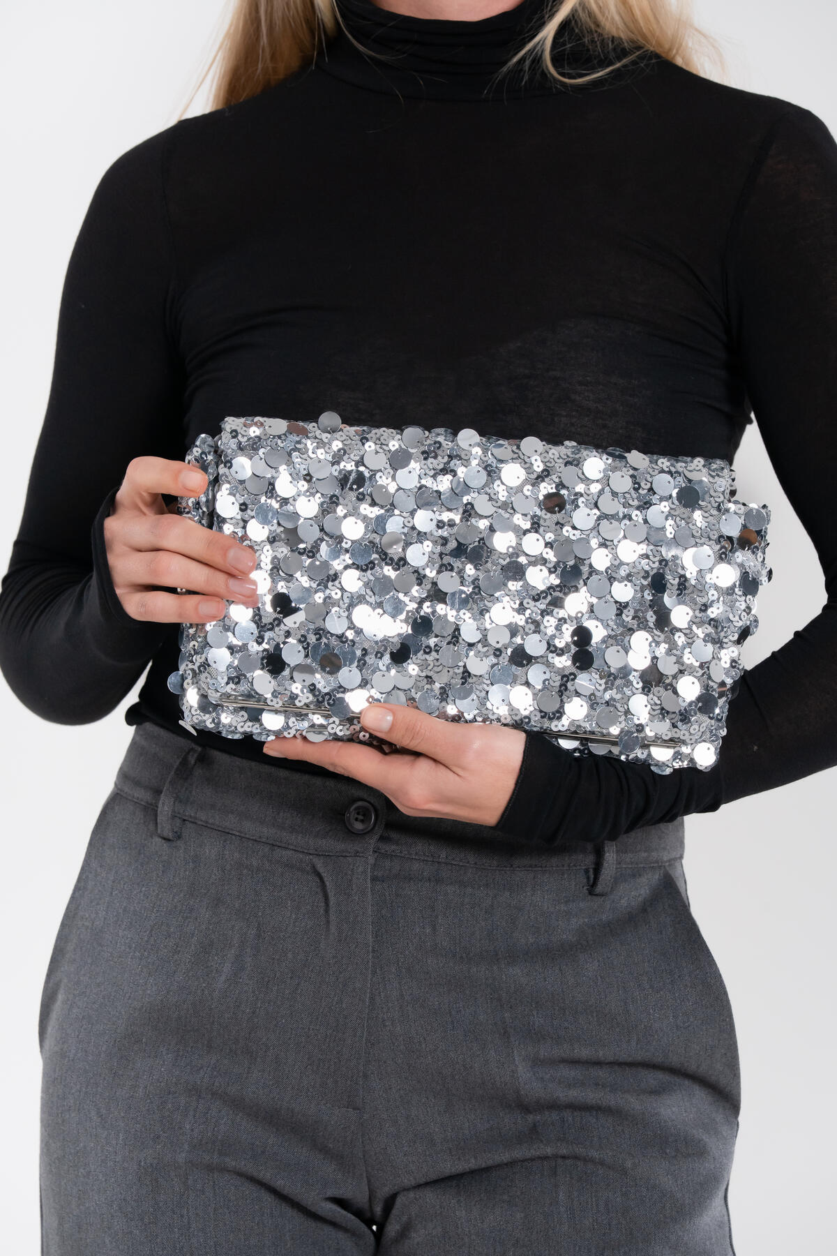 Borsa a tracolla con paillettes, elegante e luminosa.