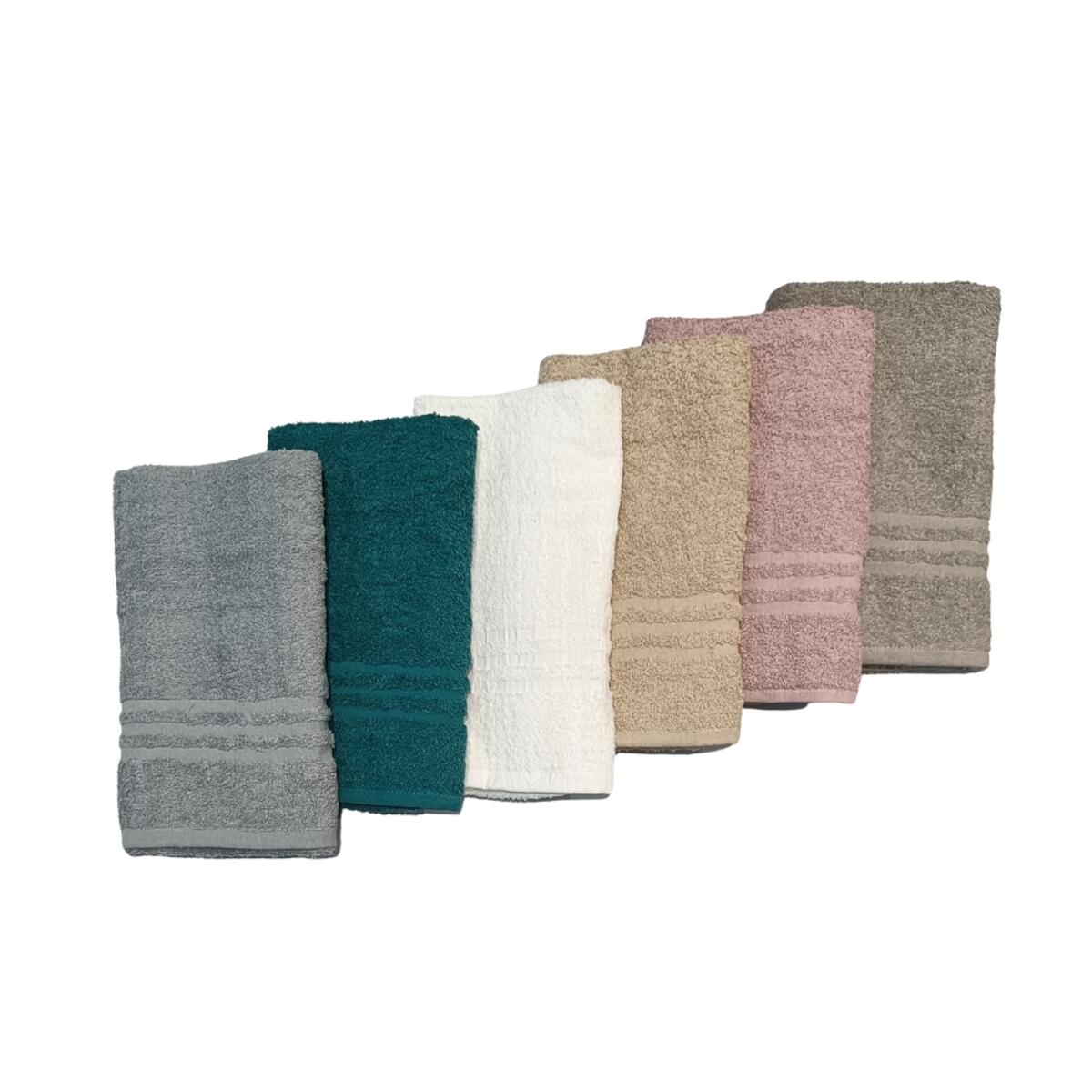 Il set da 6 pezzi è composto da 1 asciugamano per colore: grigio, petrolio, panna, beige, rosa, tortora.