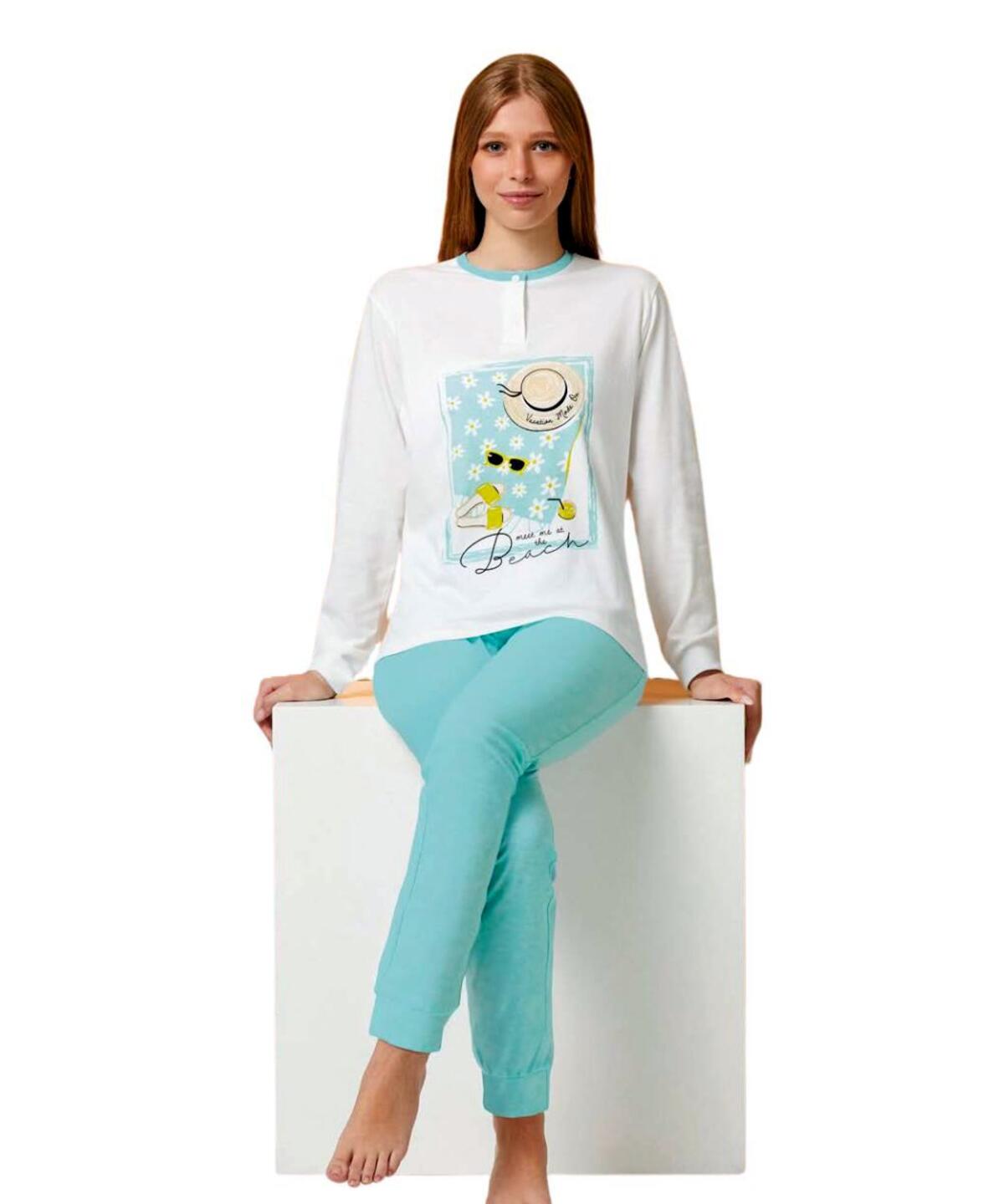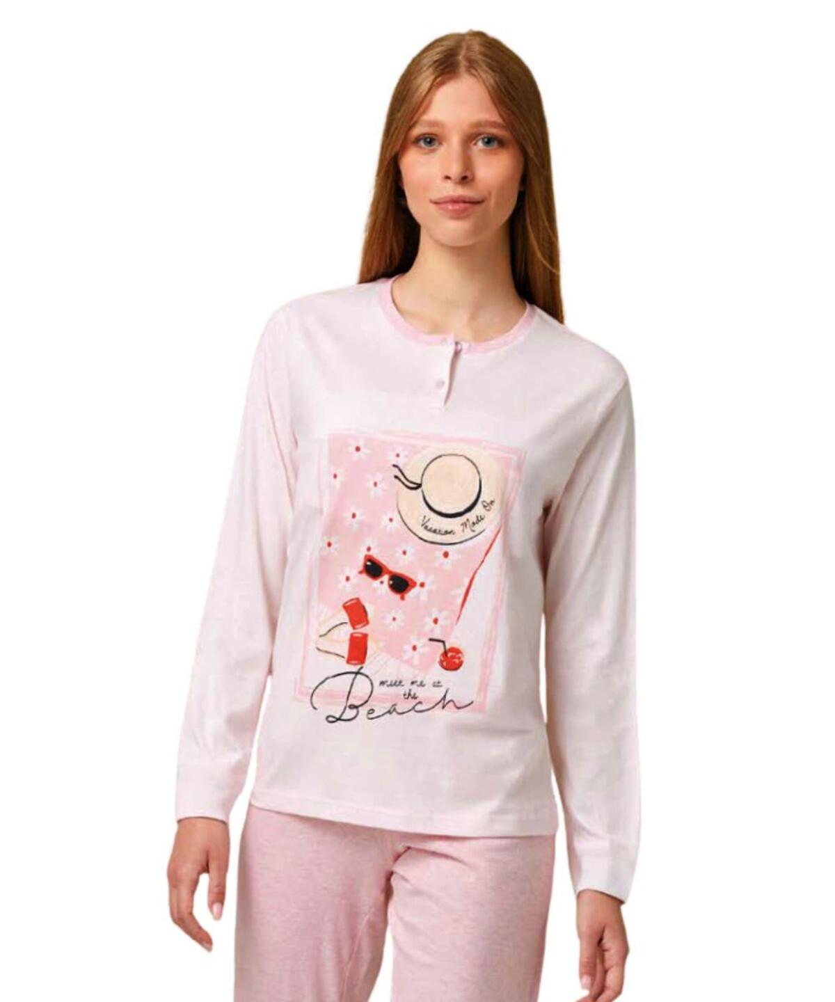 Pigiama a serafino in jersey di cotone con stampa e pantalone lungo con polsini.