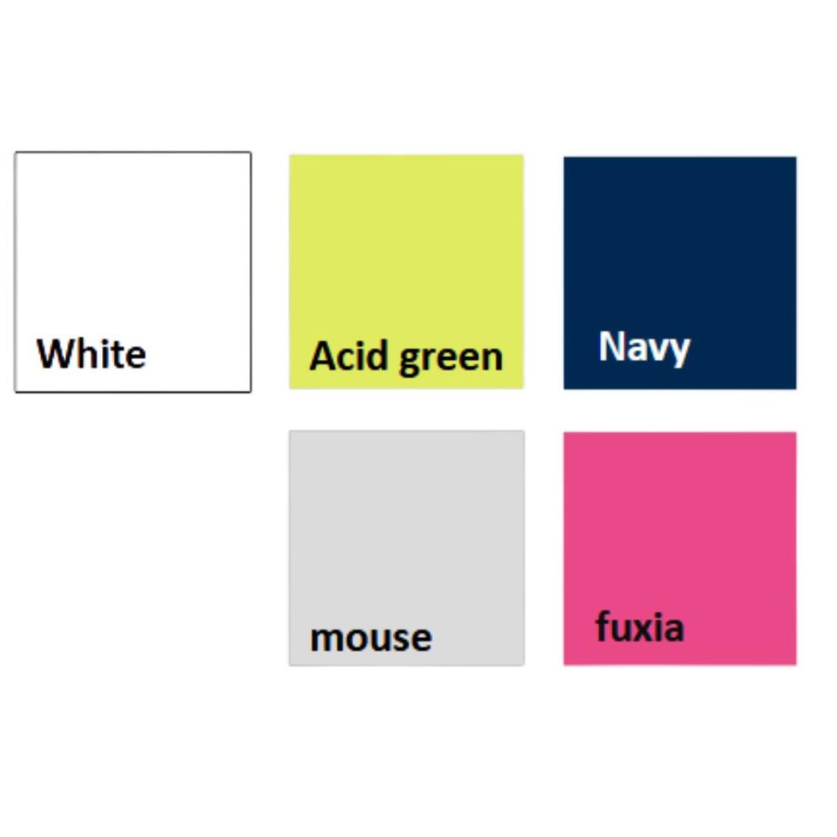 Colori: Fucsia, Bianco, Verde acido, Blu, Grigio