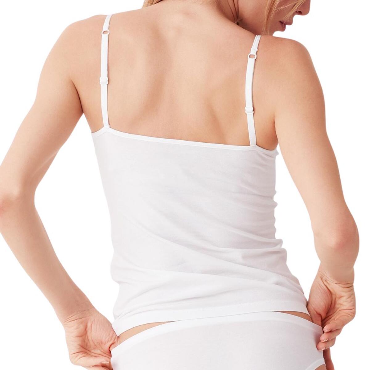 Top donna liscio a spallina stretta REGOLABILI con elastici tubolari in cotone organico elasticizzato.