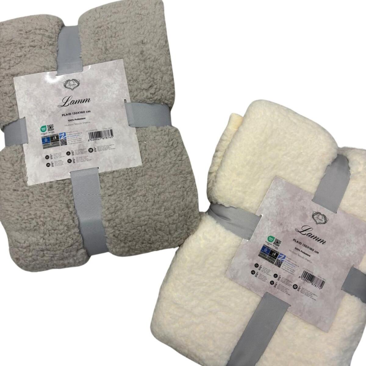 Coperta tinta unita realizzata in morbida pelliccia sintetica, disponibili in eleganti tonalità neutre.