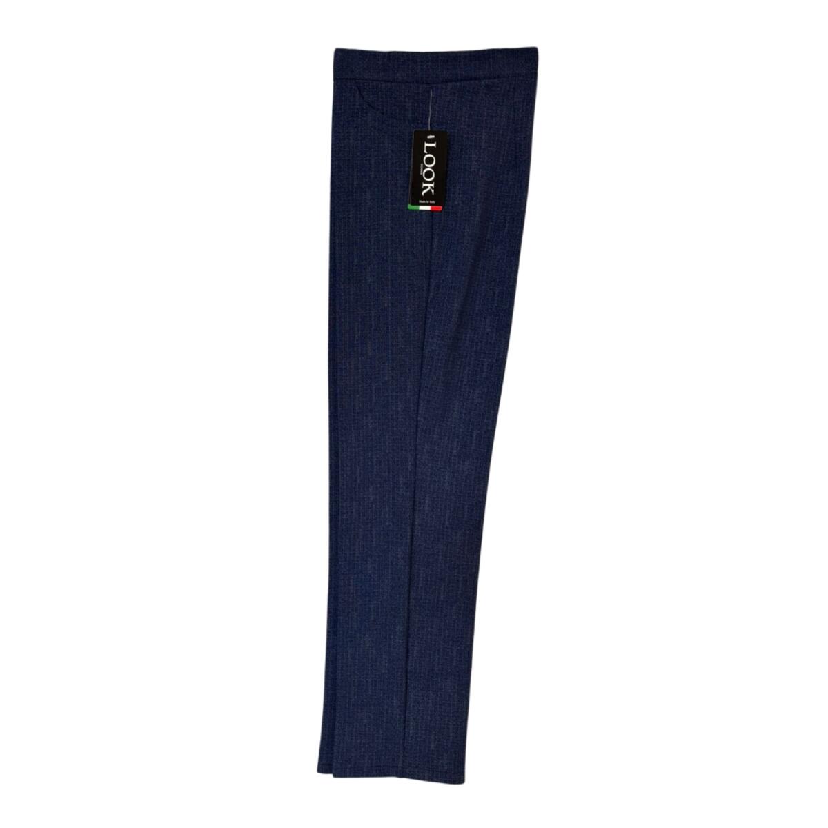 Pantalone da donna classico in tessuto gessato elasticizzato con tasca finta.