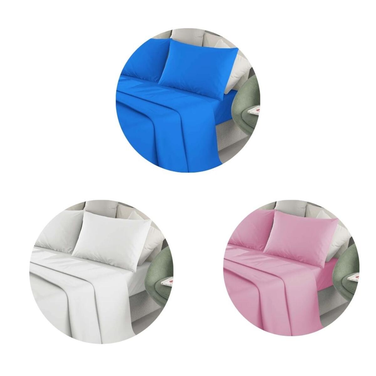 Completo letto matrimoniale a tinta unita composto da un lenzuolo sopra, un lenzuolo sotto con angoli elastici per una facile applicazione e due federe.