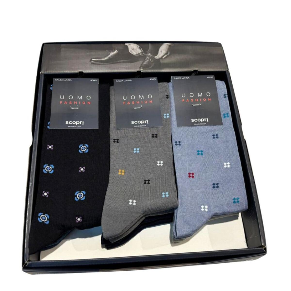 Calzino corto uomo in filo di Scozia elasticizzato fantasia. 1 PAIO