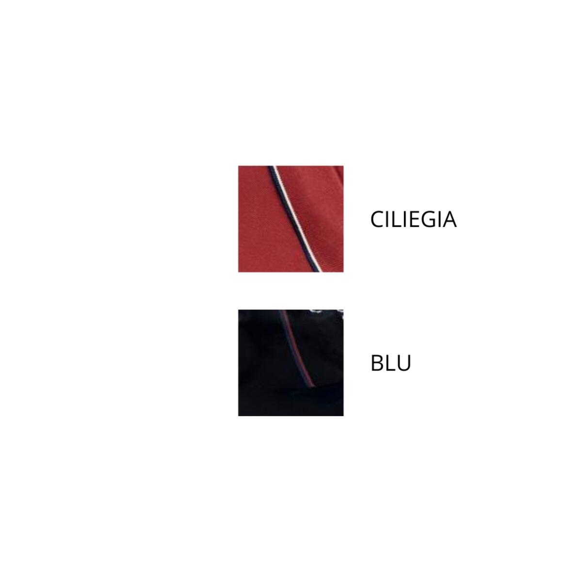 Chiusura davanti a tre bottoni, polsini in fondo alle maniche, bordino sul colletto colorato, logo ricamato sul petto.
