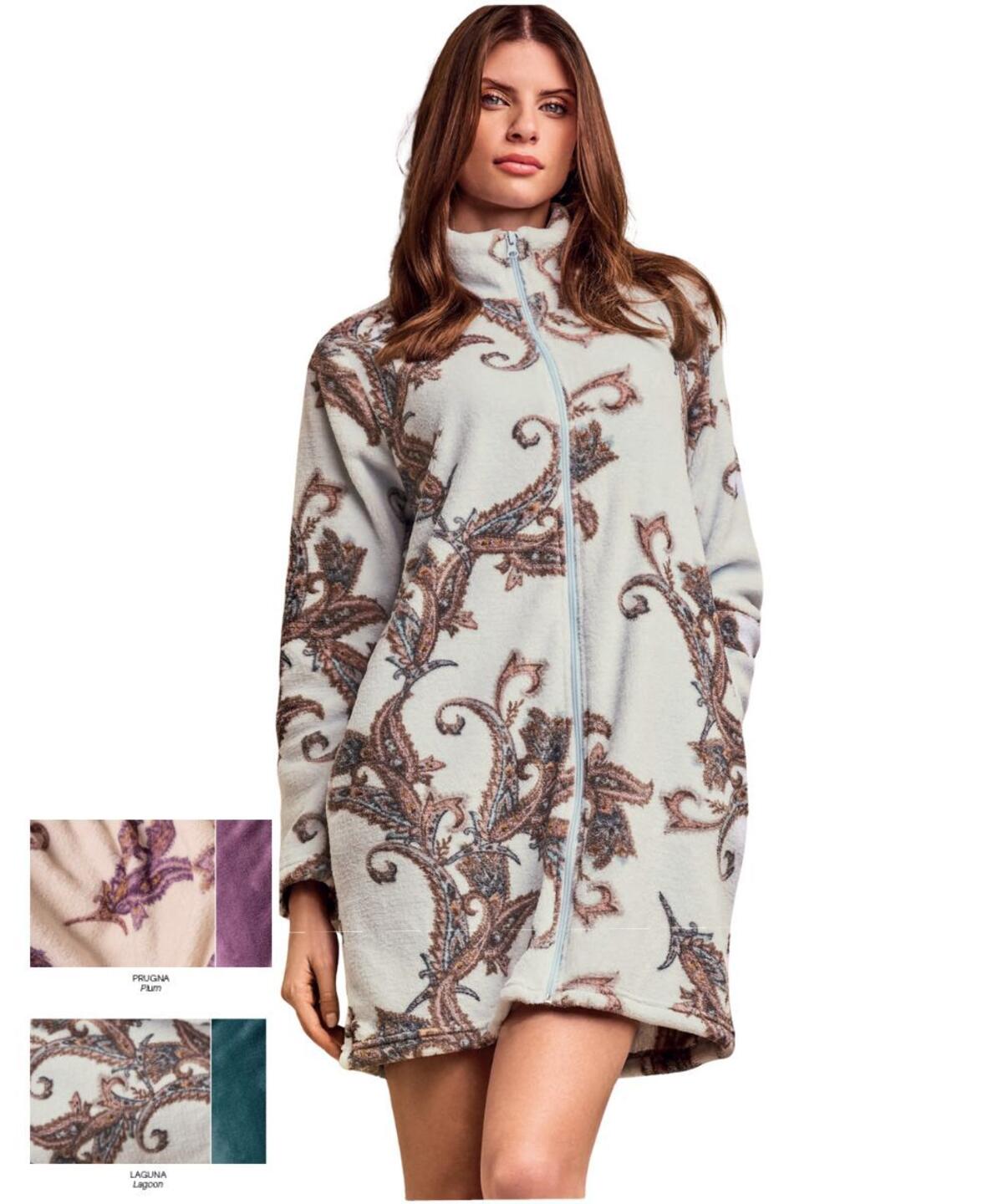 Vestaglia corta donna con zip in CALDO e morbido PAIL CORAL fantasia.