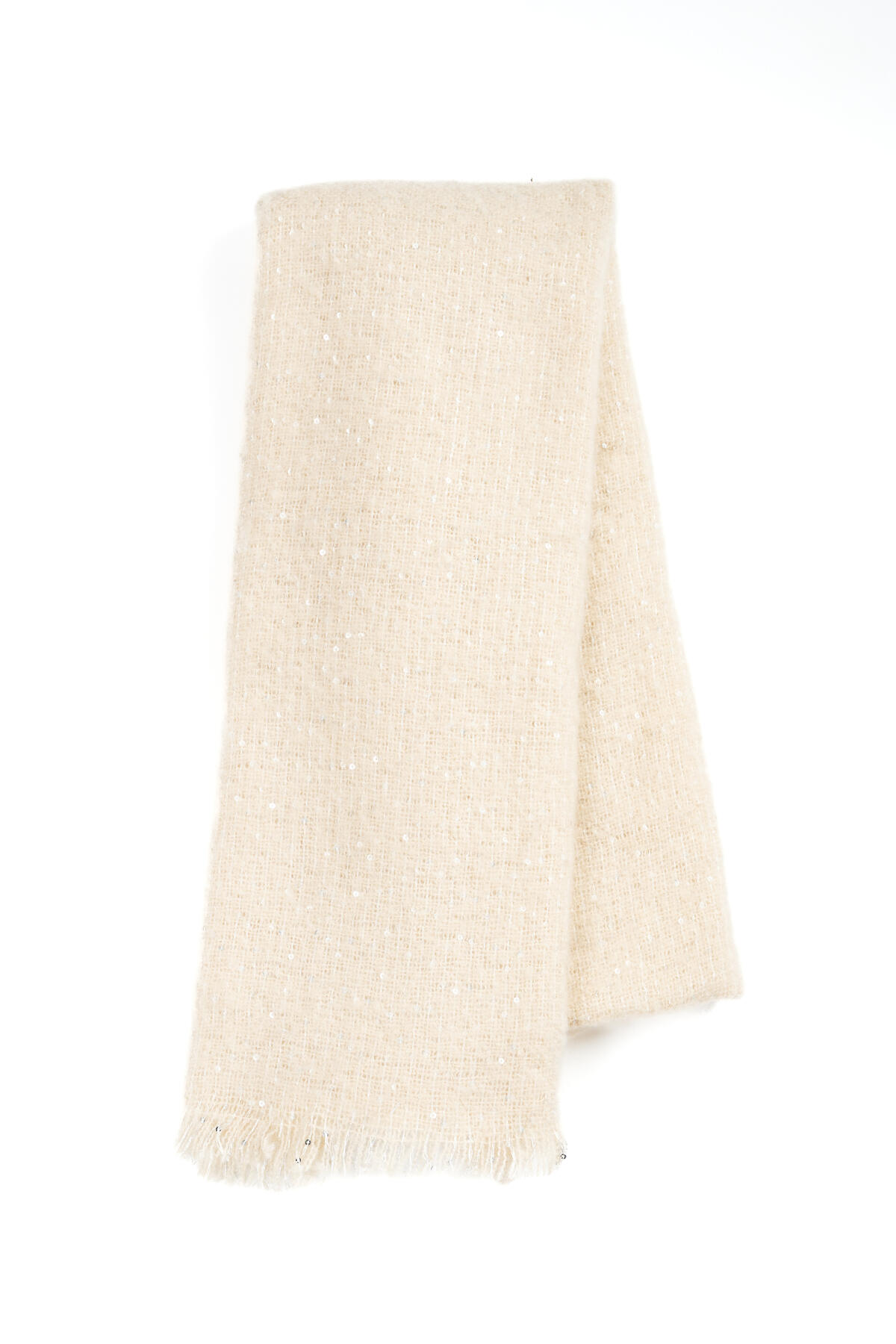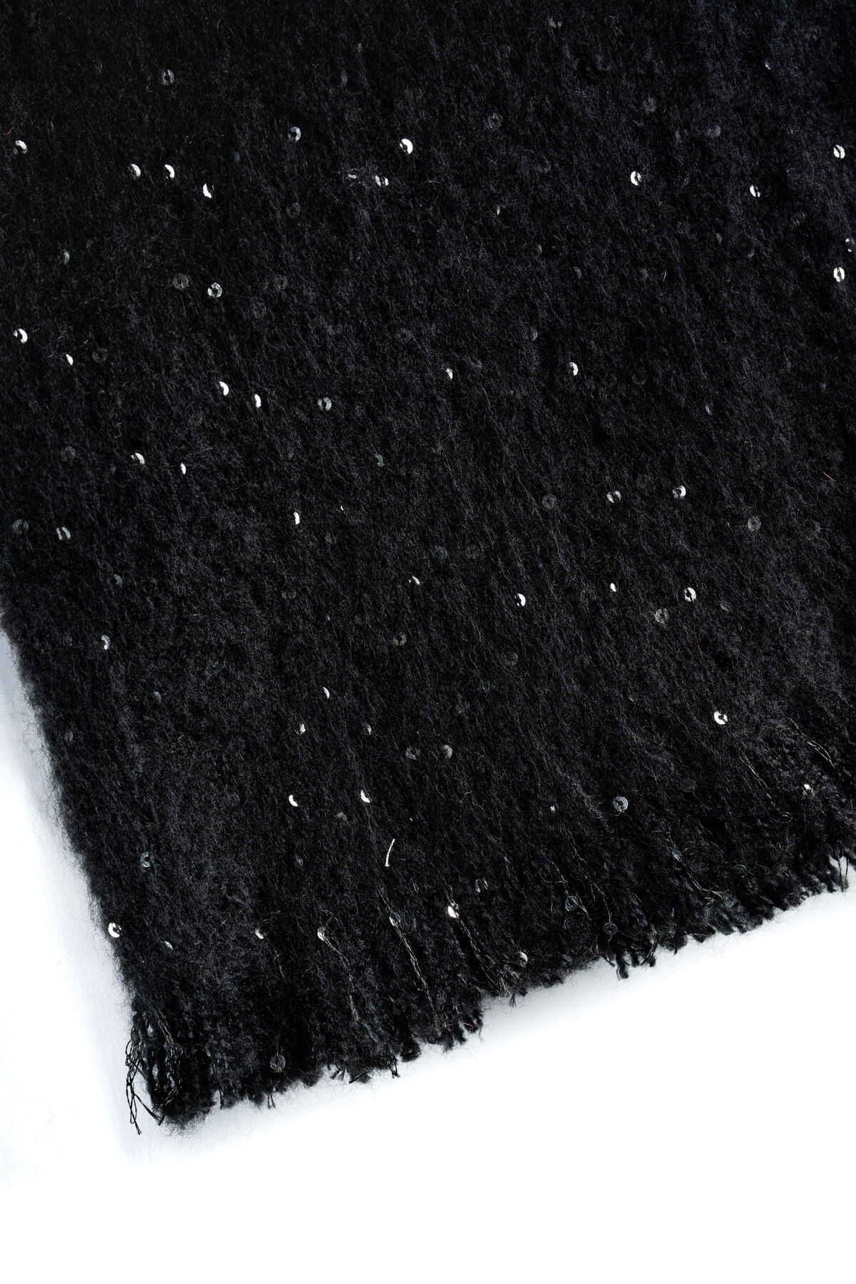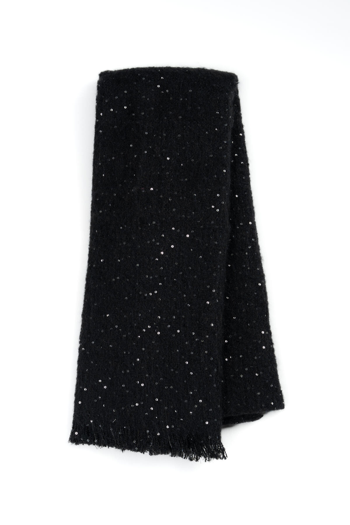 Sciarpa da donna a tinta unita, decorata con paillettes e frange sul fondo.