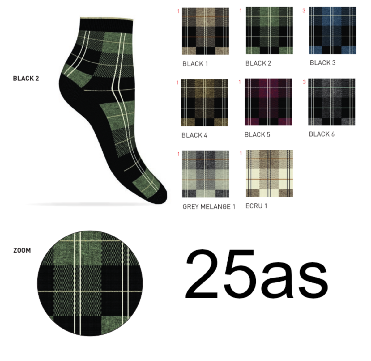 Calzino corto donna smollato in CALDO cotone elasticizzato con motivo a quadri.