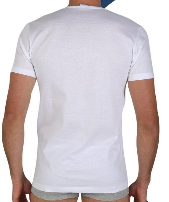 T-shirt uomo in cotone mercerizzato con apertura a serafino con bottoni.