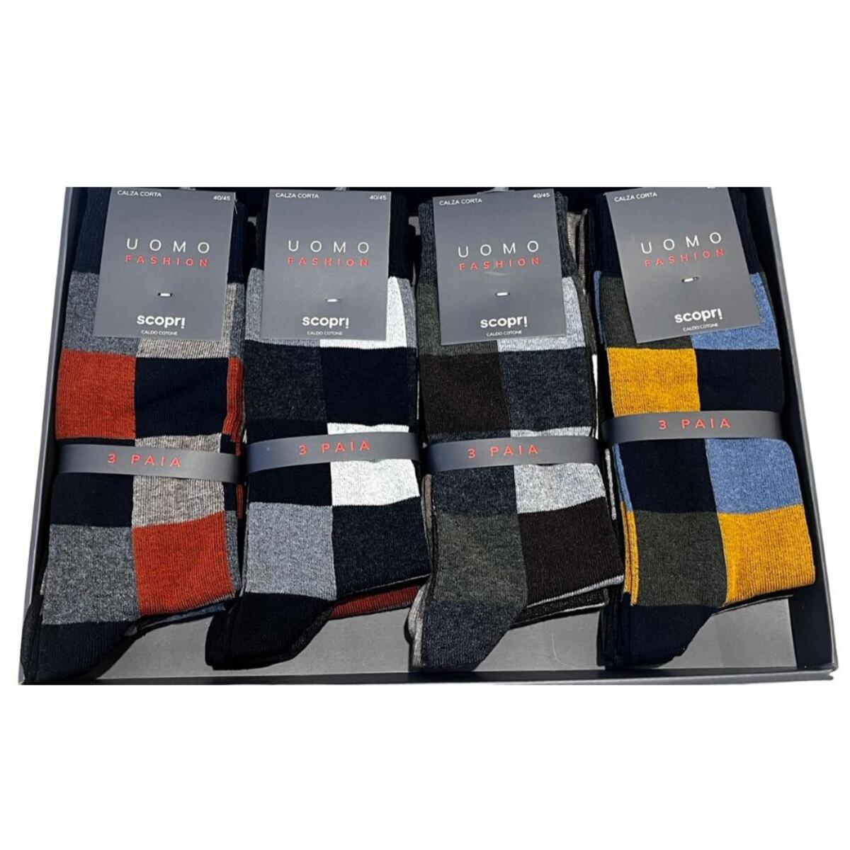 Calzino CORTO uomo realizzato in cotone caldo elasticizzato con motivo a quadri. TRI-PACK
