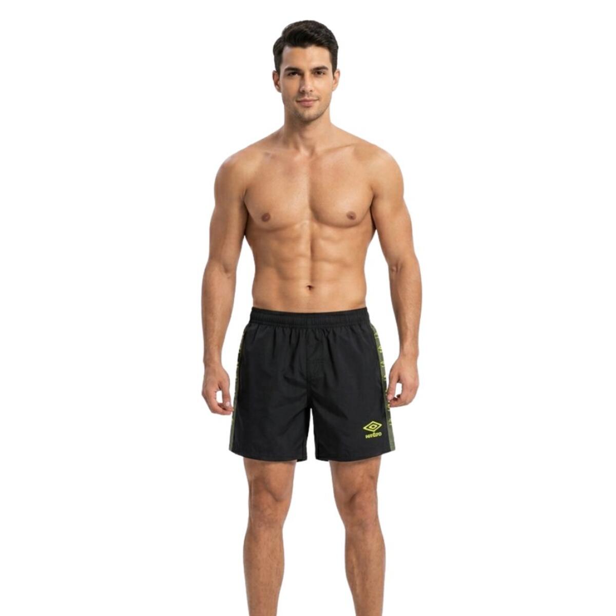 Boxer da uomo in tessuto tecnico, con vita elasticizzata regolabile tramite coulisse, tasche laterali e slip interno in rete. Logo Umbro stampato.