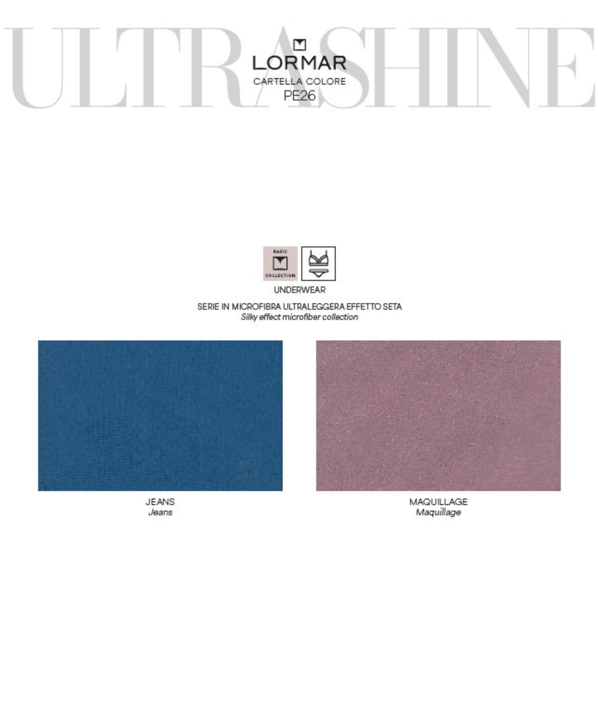 Brasiliana della linea "UltraShine" di Lormar, in morbida microfibra effetto seta, pannello anteriore doppiato in cotone e retro a taglio vivo.
