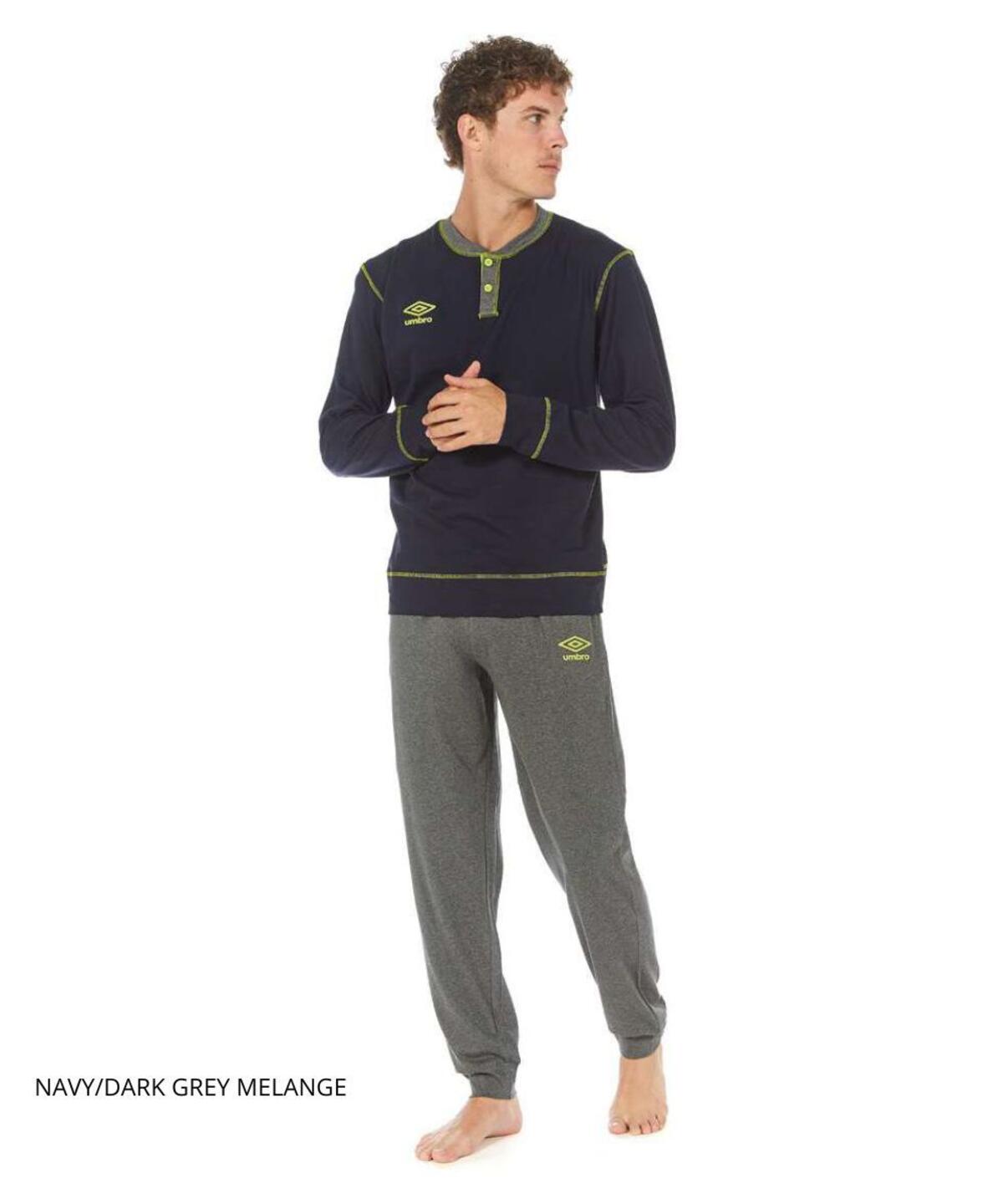 Pigiama uomo a serafino in jersey di cotone con stampa logo e pantalone lungo con polsini.