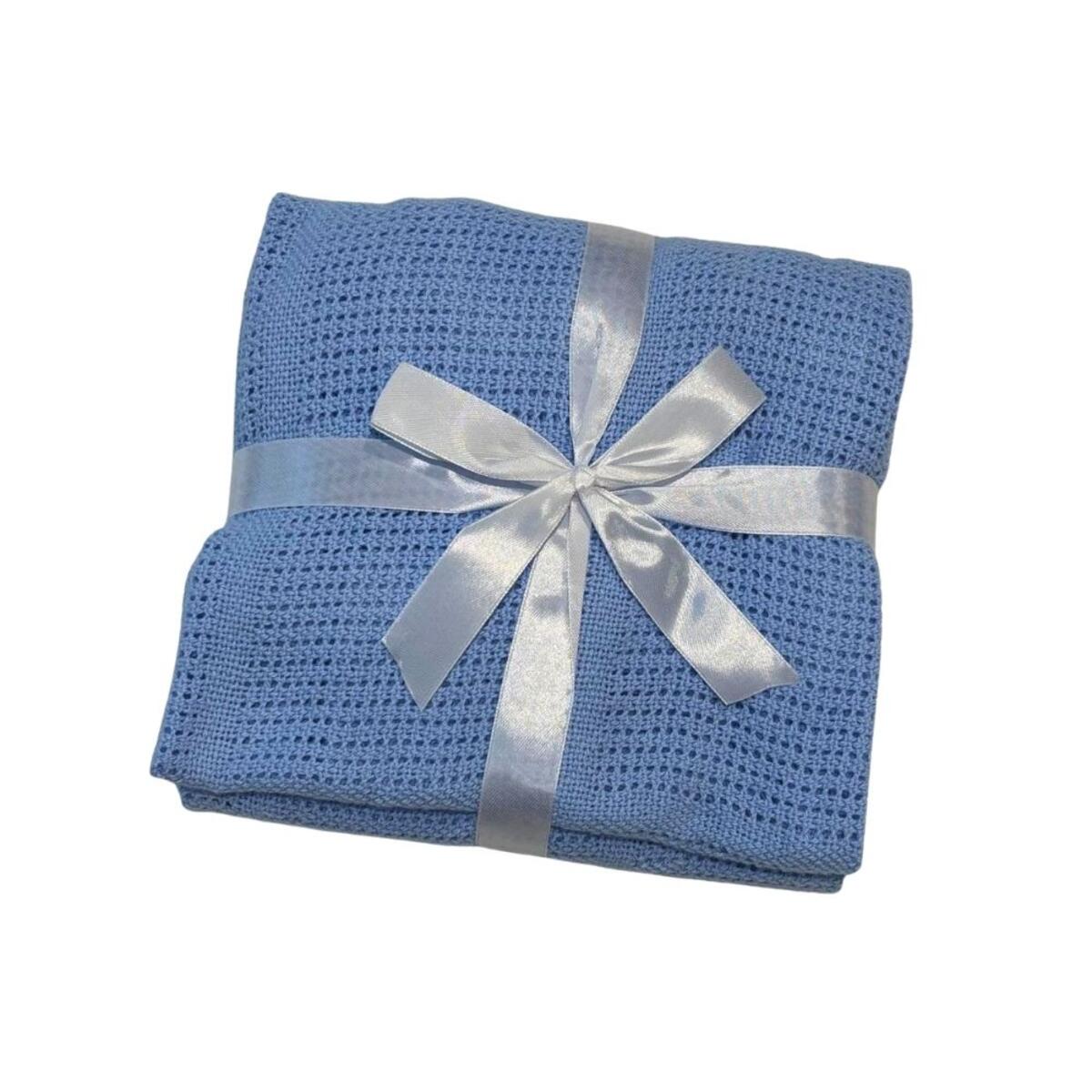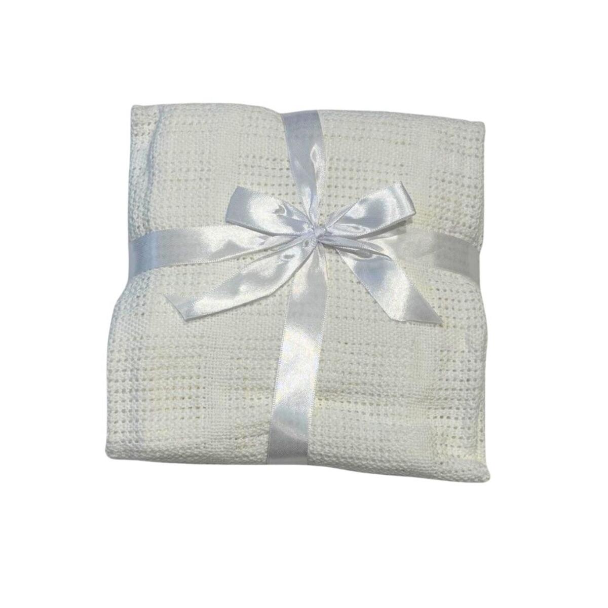 Copertina da neonato per la culla caratterizzata da una raffinata lavorazione a maglia traforata, offre il perfetto equilibrio tra traspirabilità e protezione, mantenendo il neonato alla giusta temperatura senza appesantire.