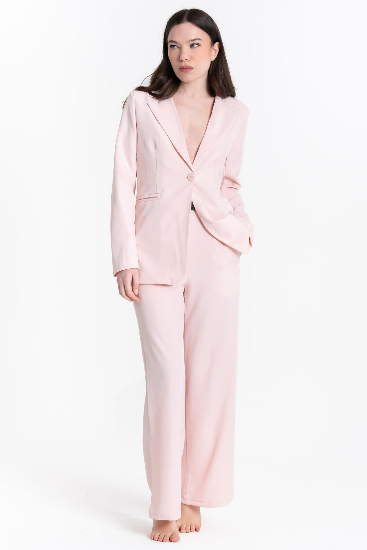 Blazer monopetto dal taglio essenziale, con rever classico e chiusura a un bottone. Linea morbida e tasche a filetto.